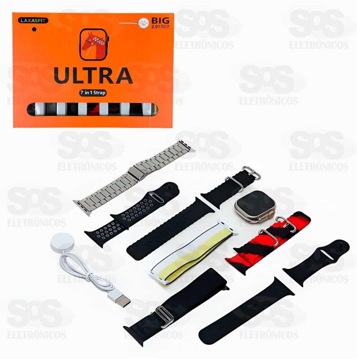 Relógio Smartwatch Ultra 49MM Com 7 Pulseiras Laxasfit
